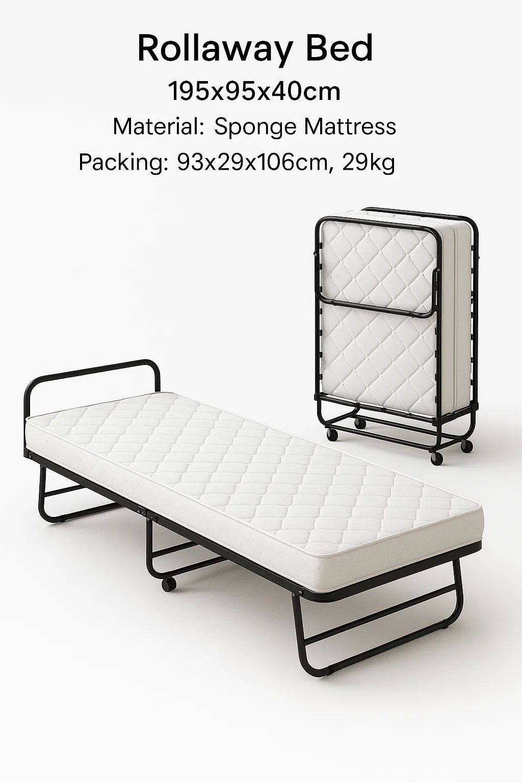 Rollaway Bed with Mattress – 195x95x40cm